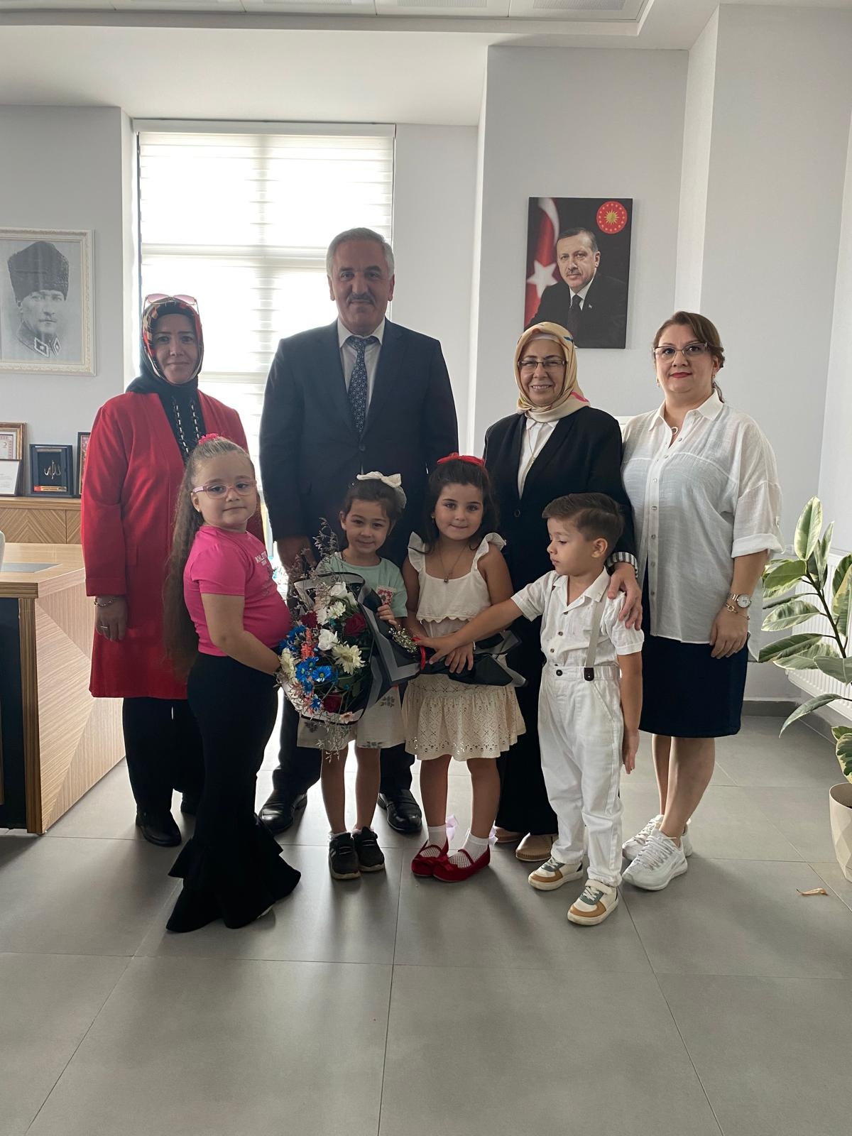 Hacı Atiye Ve Gülizar Anaokulu müdürü,öğretmenleri,velileri ve öğrencileri İlköğretim haftası kutlama etkinlikleri kapsamında İlçe Milli Eğitim Müdürümüz sayın Mehmet DEĞERMENCİ'ye ziyarette bulundular.